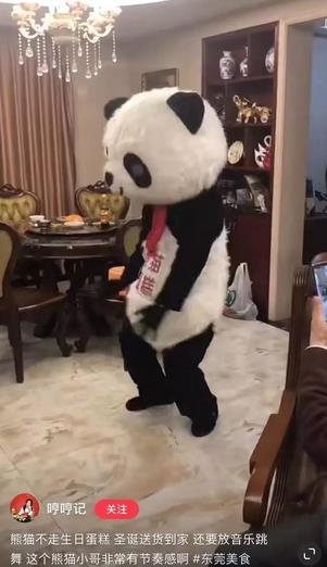 但是,熊猫不走的配送员为客人送蛋糕时,会身穿可爱的熊猫玩偶服,免费为用户表演各种节目,如唱歌、跳舞、魔术,表达对用户的生日祝福: